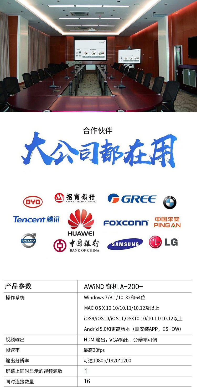 AWiND奇機A-200+無線分享會議協作一鍵電腦無線投屏手機無線投屏多屏互動一對多屏幕鏡像同屏器