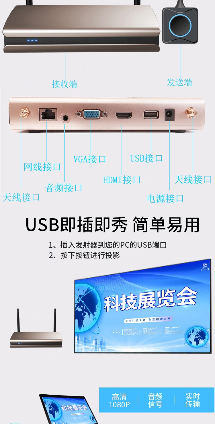 AWiND奇機(jī)無(wú)線會(huì)議投屏A-810+一鍵聯(lián)無(wú)線投屏手機(jī)平板電腦一對(duì)多無(wú)線投屏器